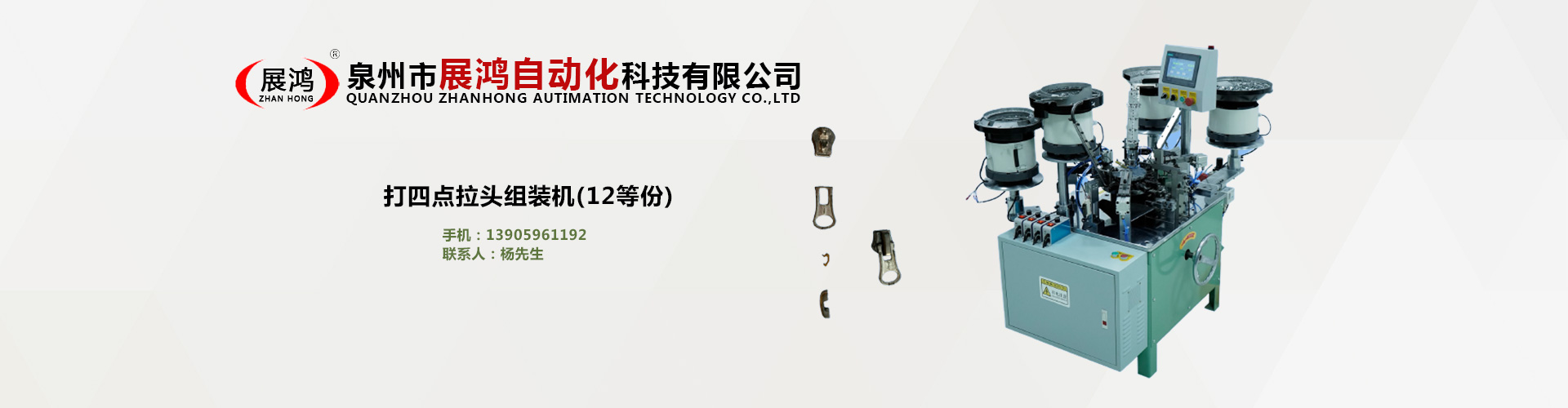 ??泉州市展鴻自動化科技有限公司始創于2003年,是一個集研發、制造、銷售為一體的現代化公司,專業從事研發、生產各類型號的全自動拉鏈頭裝配機。泉州市展鴻自動化科技有限公司始創于2003年,是一家集研發、生產、銷售、服務于一體的現代化拉鏈頭設備智能制造生產企業:專業從事研發、生產各類型號的全自動拉鏈頭智能裝配機。亦可根據不同客戶的需求,提供適合客戶自身需要的“私人定制”式專用拉鏈頭設備及自動檢測拉頭品質一體機。泉州市展鴻自動化科技有限公司始創于2003年,是一家集研發、生產、銷售、服務于一體的現代化拉鏈頭設備智能制造生產企業:專業從事研發、生產各類型號的全自動拉鏈頭智能裝配機。亦可根據不同客戶的需求,提供適合客戶自身需要的“私人定制”式專用拉鏈頭設備及自動檢測拉頭品質一體機。